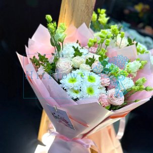Доставка с поздравлением. Наш курьер торжественно вручит букет от вашего имени и зачтет ваше поздравление. Пожалуйста, уточните стоимость этой услуги у менеджера по телефону.